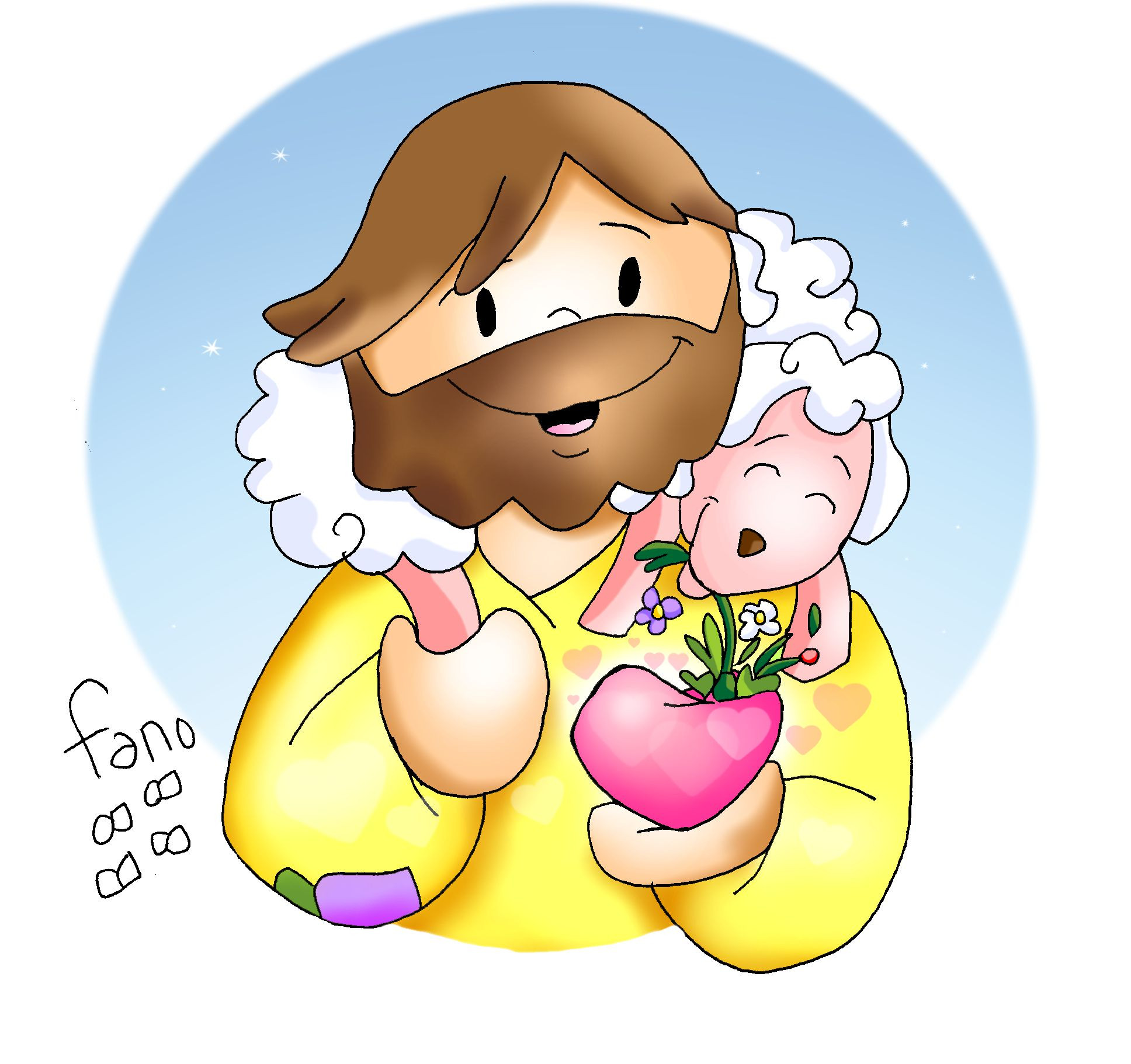 Isus istupi, uzme kruh i dade im, a tako i ribu. -